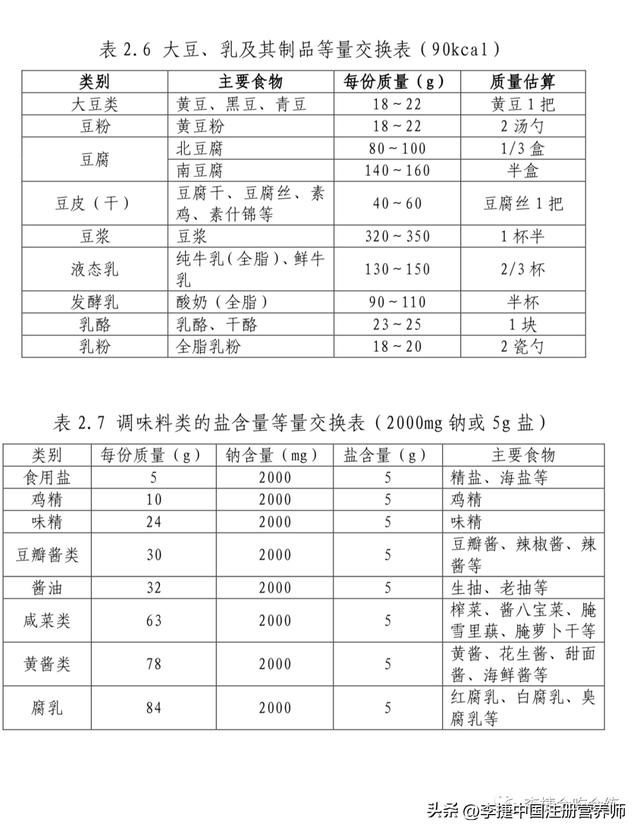 这是食物交换份数的表格,你们可以根据这些菜谱里边的同类的食材进行交换,蔬菜和蔬菜交换,主食和主食交换,优质蛋白质和优质蛋白交换。这样就能用你当地的食材,也搭配出同样效果的营养配餐了。
